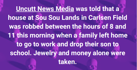 And, an Operation Safe Streets exercise was conducted in the Cedros district between 2 am and 8 am, yesterday, during which four suspects were held for various offences including Possession of Dangers Drugs, Possession of Arms and Ammunition and House Breaking and Larceny.