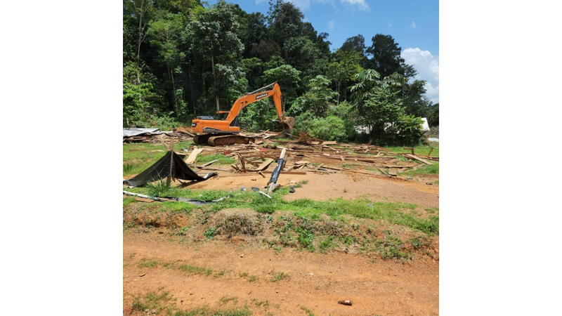 The Guyana Geology and Mines Commission (GGMC) demolished two brothels operated by a Venezuelan woman, who was recently convicted of human trafficking. The Ministry of Home Affairs said the GGMC’s destroyed the two brothels, which were lo
